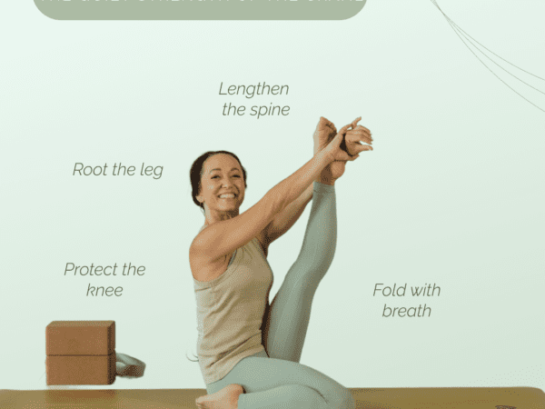 The secret to doing any difficult posture is figuring out where you need to work and working on that with patience and kindness. You can’t rush the journey. Your body will open when it’s ready to. Watch the video with Kino for more details about doing this pose.
